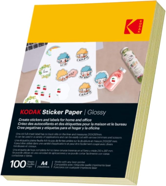 Самоклеящиеся этикетки KODAK формата A4, 100 листов, подходят для лазерных/копировальных аппаратов, для универсальных этикеток (глянцевые)